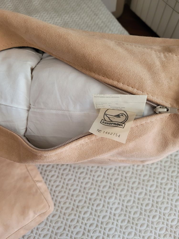 Большие бежевые подушки 50*45 примерно. Перьевые сами подушки. Они были в комплекте с диваном как боковые. Ткань под замшу. Почти не использовались - слишком много было таких для одного дивана, убрали их. По 1500 руб. есть 5 шт!
