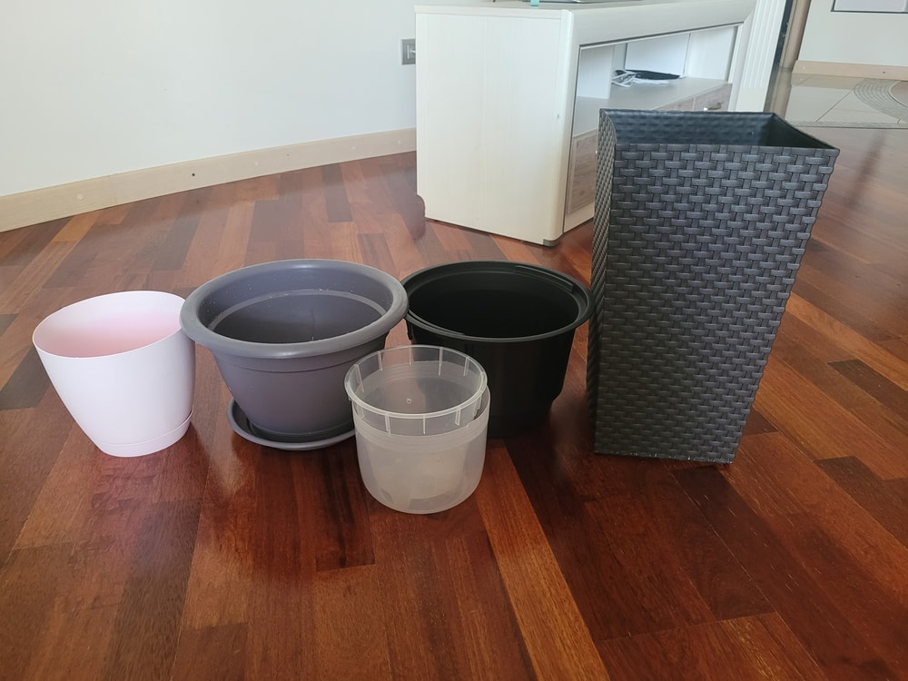 черный с вытаскивмющимися ручками объем 6 литров. новый. вообще это вставка из большого горшка. но можно и отдельно его использовать НЕТ