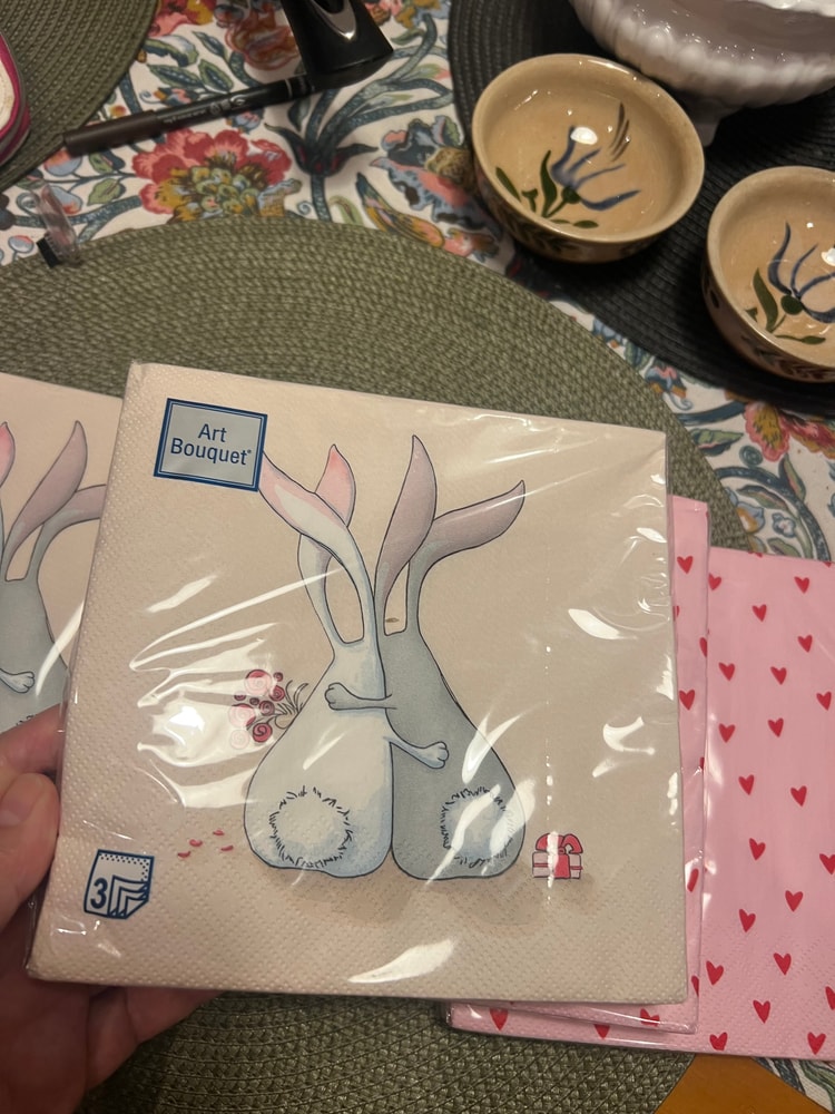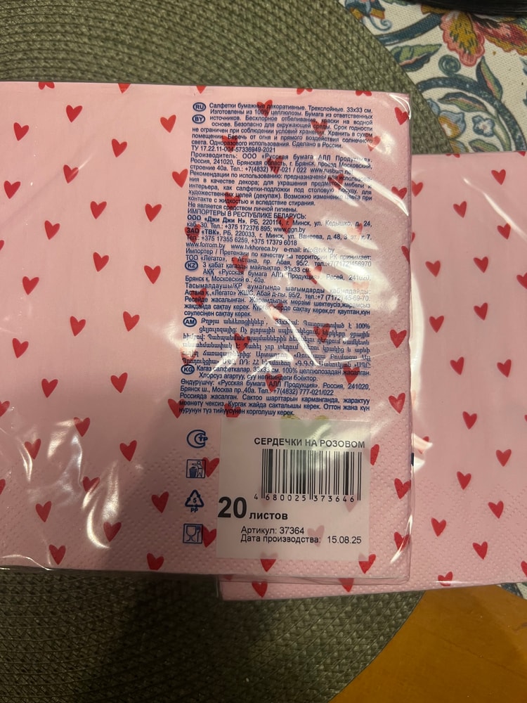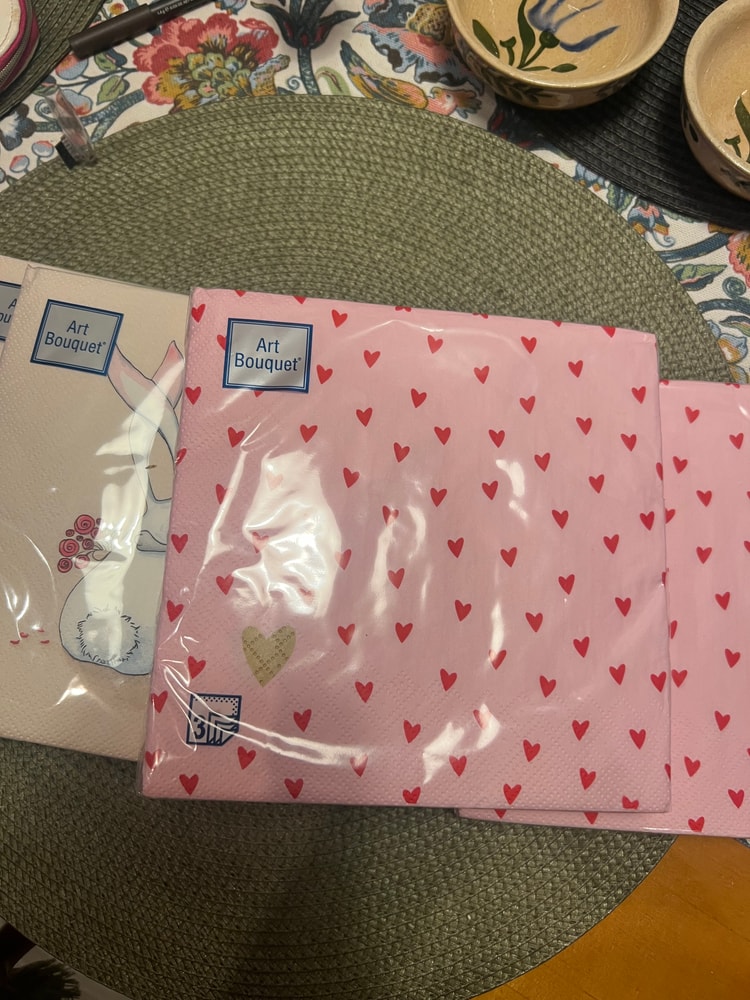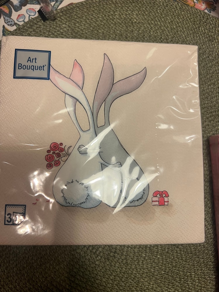 3-х слойные салфетки 33х33 с сердечками экв. 200 упаковка, есть 2, с кроликами 250 упаковка