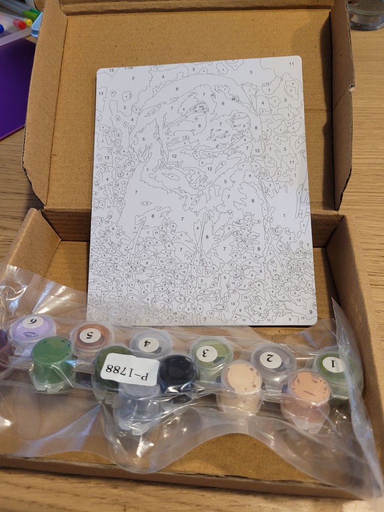 17. Картина по номерам. Краски в вакууме, но возможно подсохли. Можно подобрать похожие цвета. Экв 100 руб.