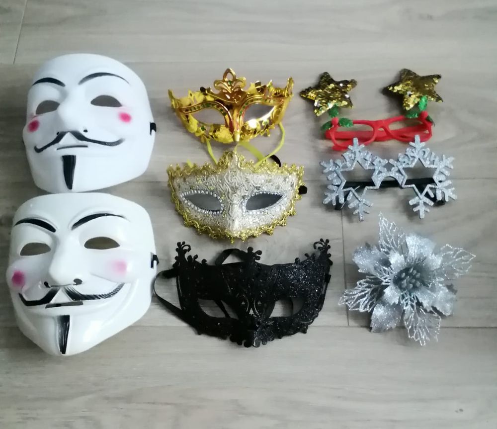 полумaски, справа со звездочками и снeжинки - это очки, бу по однoму рaзу,, экв по 300