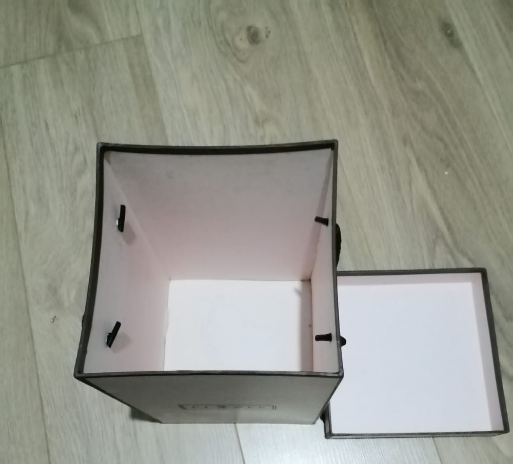 2.Квадратная размер 19 на 19см, высота 17,5см, картон, экв 300