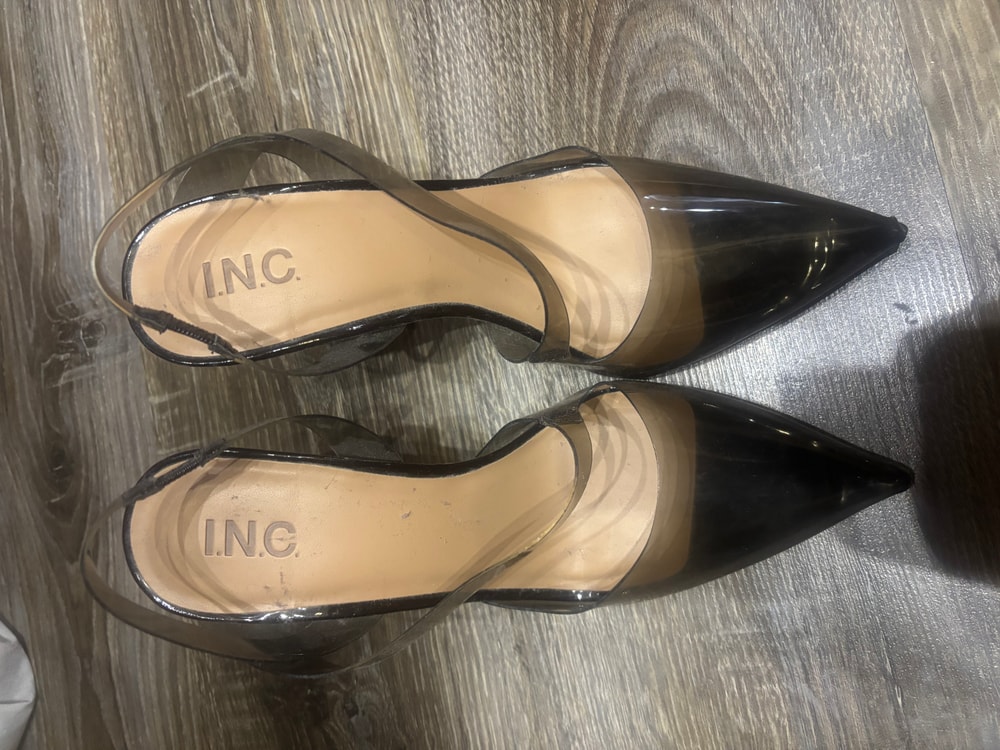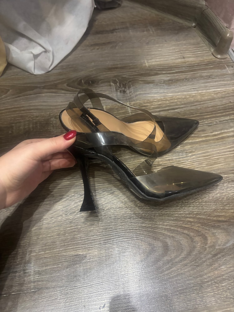 Новые туфли в стиле amina muaddi, верх мягкий пластик, узнаваемый каблук. Куплены в сша, бренд inc. Размер 40 росс, на стопу 26-26,5 см. Экв 5000