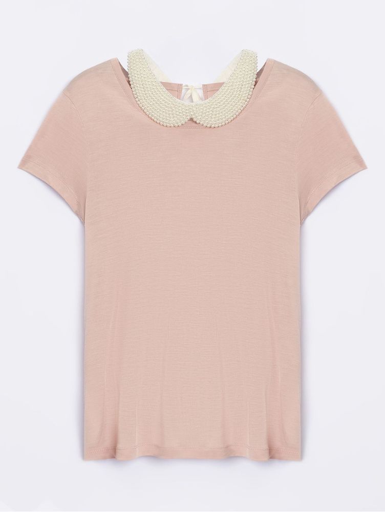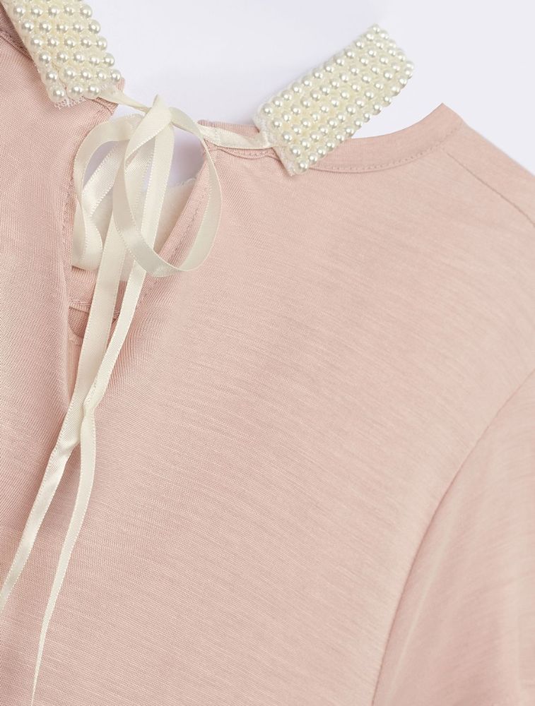 100% вискоза . Воротничок из жемчуга, очень женственная и стильная вещь ! При желании можно убрать .