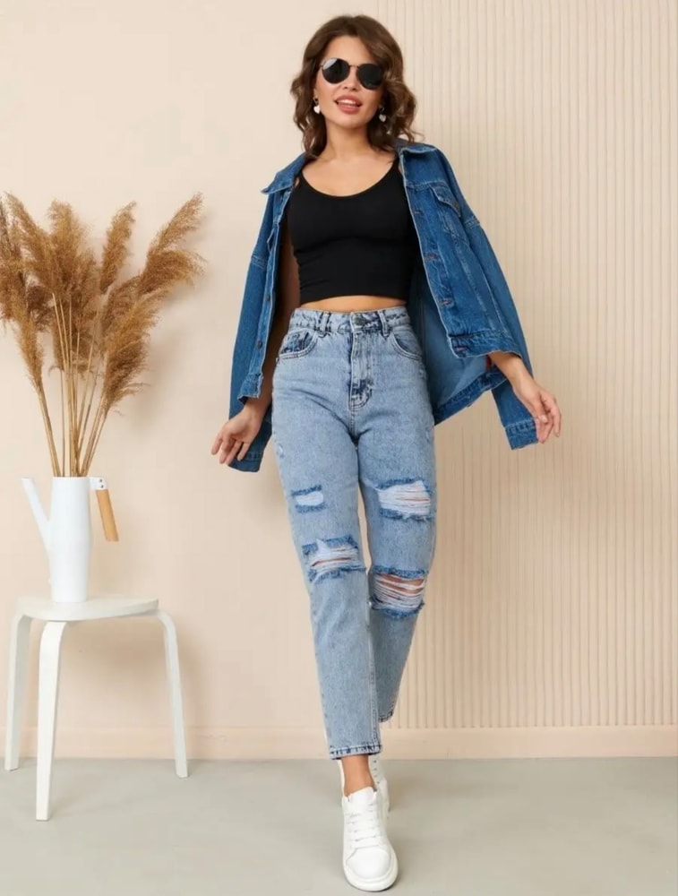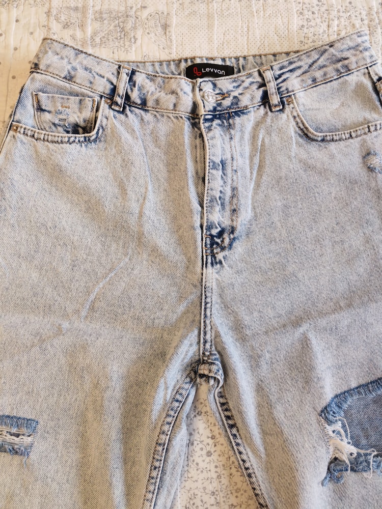 2.🛍️ Джинсы мом LEVVAN рваные 44-46 р-р, в отличном состоянии, цвет - огонь 👍, плотный качественный джинс. ЭКВ 2000.