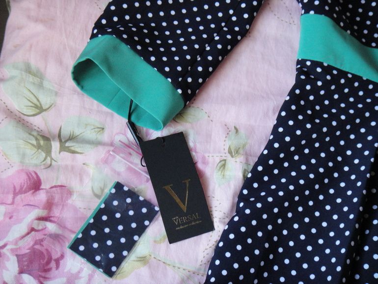 1.Новое платье "Мода Версаль" (Брест), р.46-48. Темно-синее в белый горох. Маркировка производителя: ОГ - 92 см., ОБ - 100 см., рост - 164 см. Застежка - молния сбоку. Пояс декорирован бантом и подвеской с сердечком. Длина - 100 см. Экв. 4500 руб. Обмен выборочно (не по мелочи).