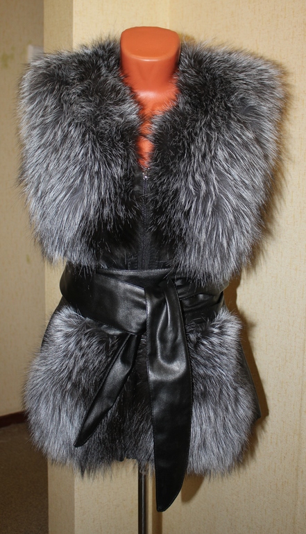 Меховой жилет(Чернобурка+кажа) б.у пару раз. Состояние отличное р 48. экв 15000