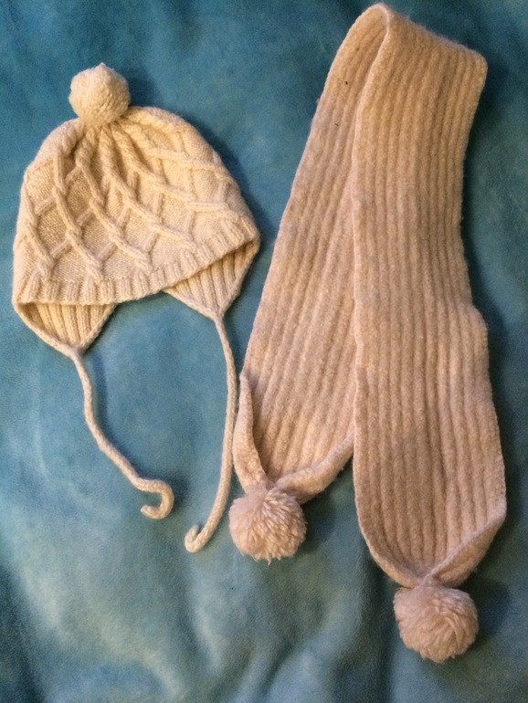 Комплект шерстяной зимний молочного цвета шапочка и шарф р44-46, 900