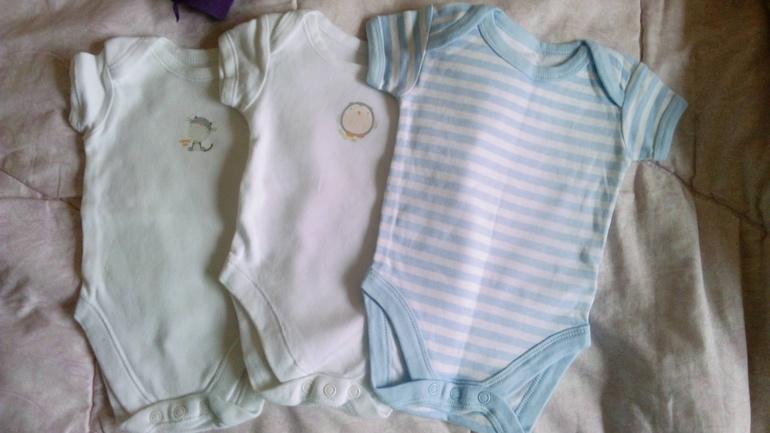 8. Боди б/у 0-3м (белые 5,5кг, полосатый 6кг) экв.300 за все