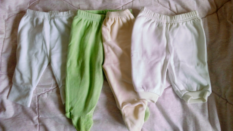 3. Штаны б/у 0-3м по150, правые экв.100 точно носили (остальные не помню, но на первых малозаметное желтое пятнышко возможно от лежания)