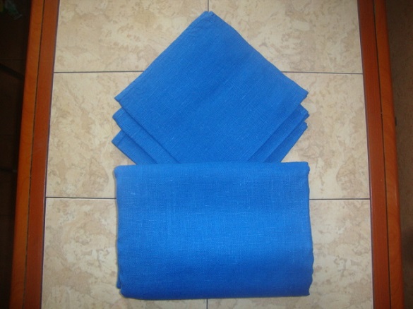 Комплект новый (не пользовались), но на подарок не подойдет, если только для себя. Состав:100% лен (Беларусь).Цвет: насыщенно-голубой.Комплект не полный, не хватает 3 салфеток (из 6шт).Лежал давно в шкафу, на одной салфеточке на сгибе есть небольшая белесость, а так весь в отличном состоянии.
