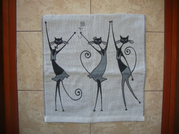 Новое, небольшое полотенчико с танцующими кошками. Очень мягкое. Экв.500р.