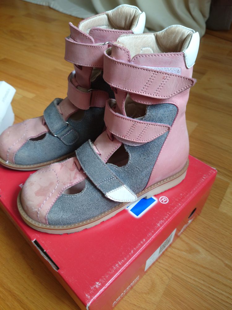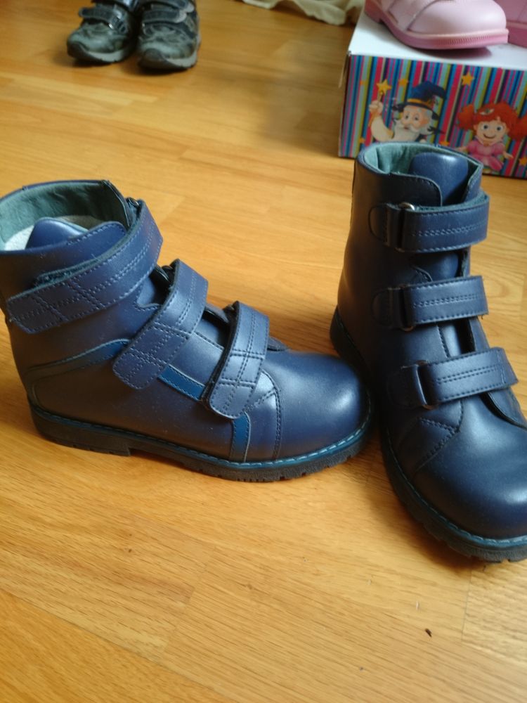 Демисезон кожаные ботинки 32 разм, они орто, кому нужна хорошая фиксация ножки. Чуть носок скорябан, а так почти не носилм. экв 2500