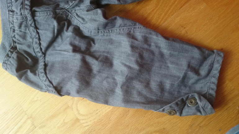 Классные бриджи Гулливер, на 104 по этикетке, вверху резиночка. НО удобно надевать хоть с года -смотрится брючками. Тоненькая джинса на лето. экв 600