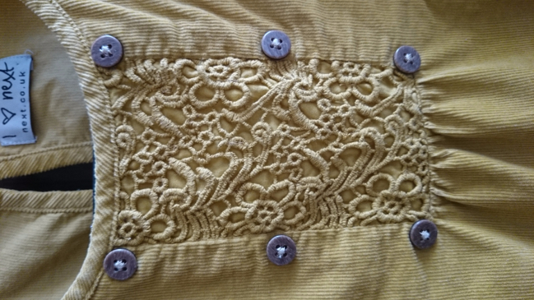 Сарафан вельветовый, некст, 4-5 по маркировке, но нам до 116 отлично было. Дефекты на фото, при желании можно треугольничек ткани или кожи пристрочить, будет как новый. экв 800
