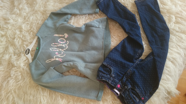Стильная кофточка Бенеттон, маркировка 130, но подойдет и раньше, лучше если ребенок плотный -на моей худышке болтается. экв 800