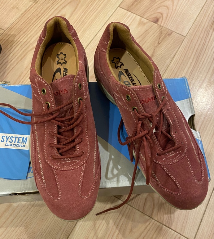 Абсолютно новые кроссы Diadora sistem, 40 размер. отлично на осень подойдут, хорошая подошва, мягкий задник, снаружи замша, внутри кожа. Есть нюанс - пятна на замше сбоку на 1 ботинке. Можно или закрасить тонировкой или не заморачиваться вообще.