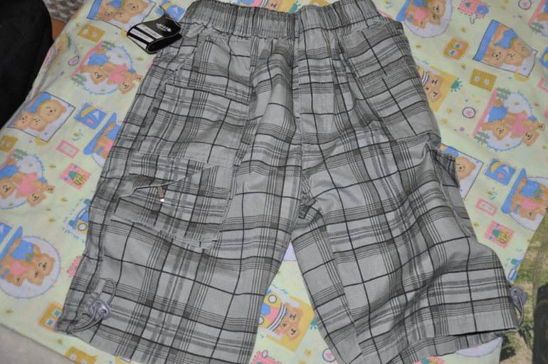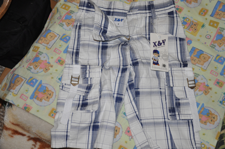 Посмотрите, пожалуйста, за шорты белые в клетку и за футболку с миньоном.