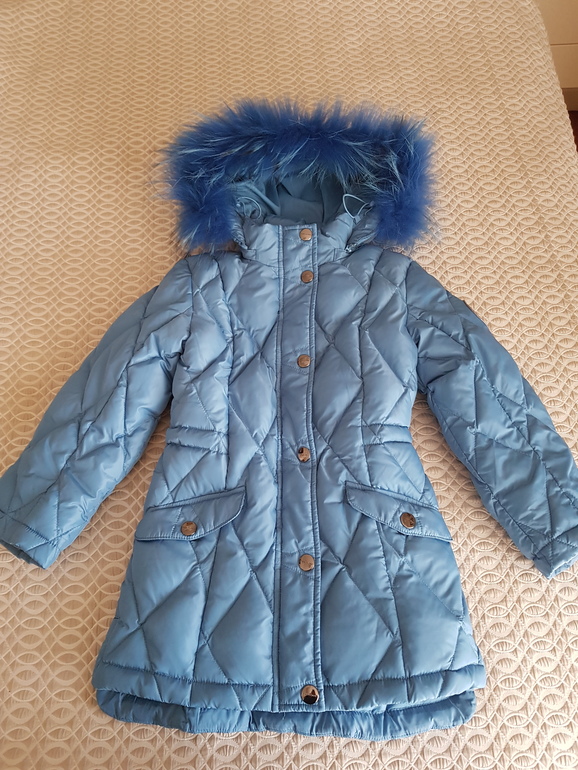 30. Теплое пальто - не пух. Холодная весна/ осень. Носили раз 5, не больше. Постирано. Сильно маломерит. На 134 примерно подойдет. Экв 5000 руб.
