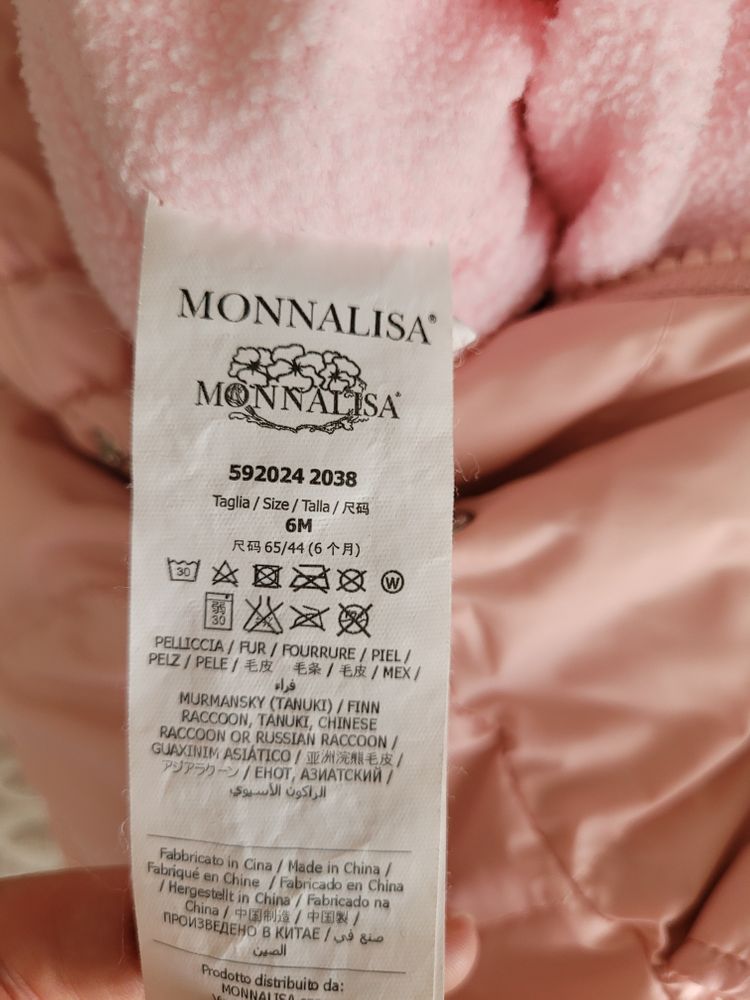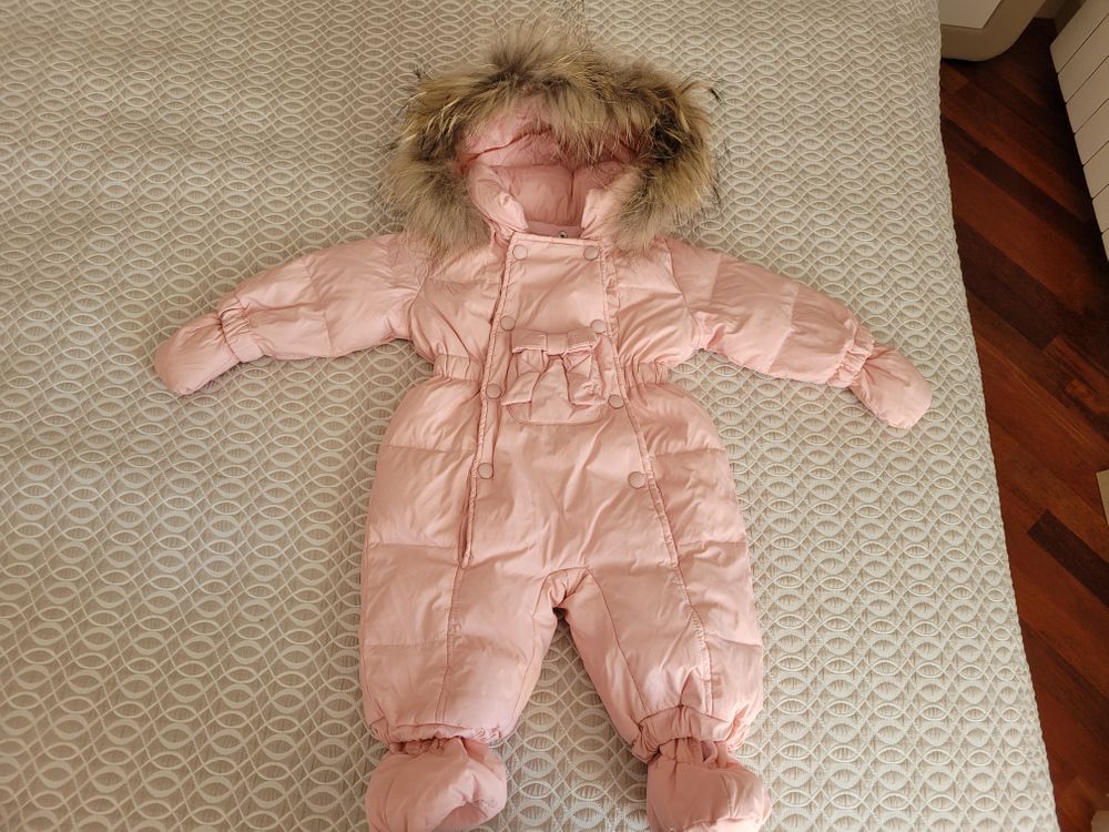 1. Комбез пуховый MonnaLisa покупался в Италии. Оригинал. Размер 6, но лучше на 3-7 примерно. Мы носили на 2-6,5 мес. Сначала большеват был, ручки, ножки не вылезали в варежки, сапопожки. Потом доросли. В прекрасном состоянии, только на одной варежке одна кнопка оторвалась, держится на второй. Сама кнопка есть, в ателье можно сделать при желании, но в носке это не обязательно. Все равно варежка держится хорошо, заправляется под резинку. Экв 8000 руб.