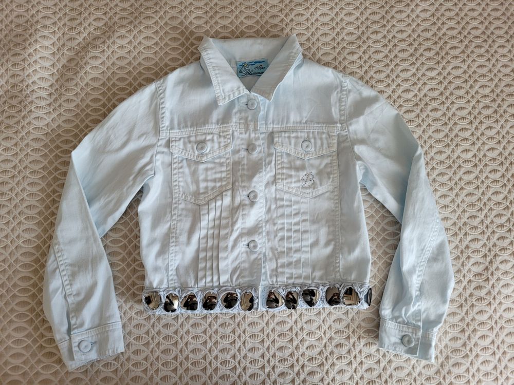 19. Курточка хлопковая летняя (типа джинсочки, но ткань не джинс) Blumarine Италия в прекрасном состоянии. Рост 128. Экв 3500 руб.