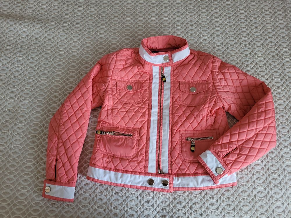 9. Стильная курточка To Be To Италия. С тоненьким слоем утепления. Размер 26. Мы одевали на 95 (подгибали рукав) и до 107 примерно. Состояние отличное, одевалась только на выход, не для прогулок. 1 стирка. 3500 руб.