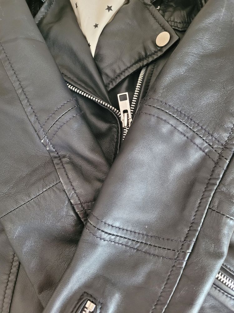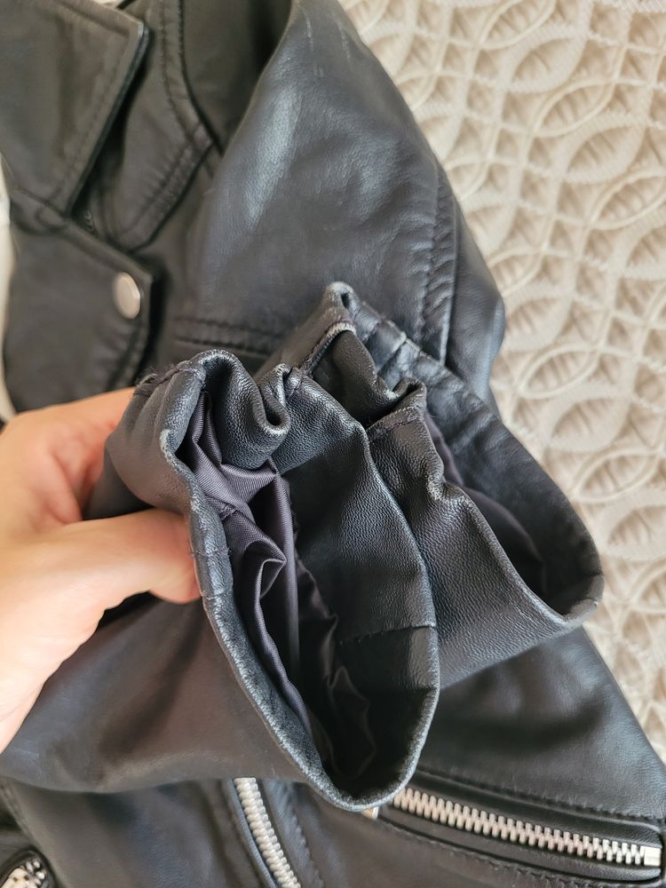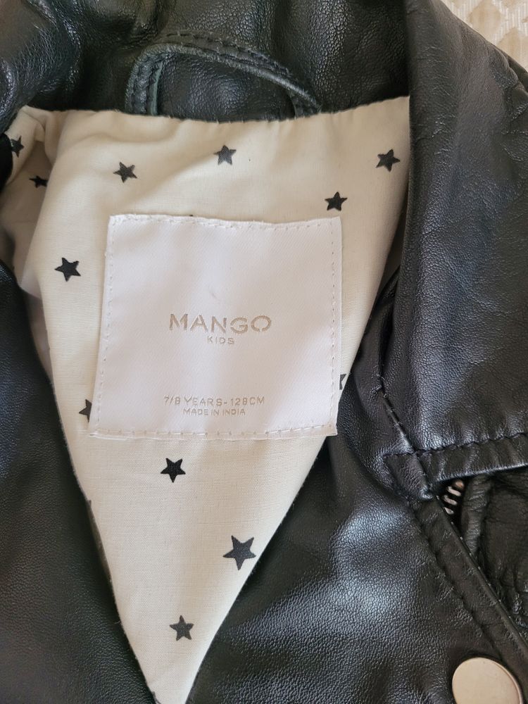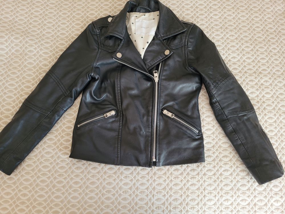25. Куртка Mango кожа натуральная. Размер 128. Худышка до 140 может носить с укороченным рукавом. НЕ порвана ни где, но на коже есть потертости.