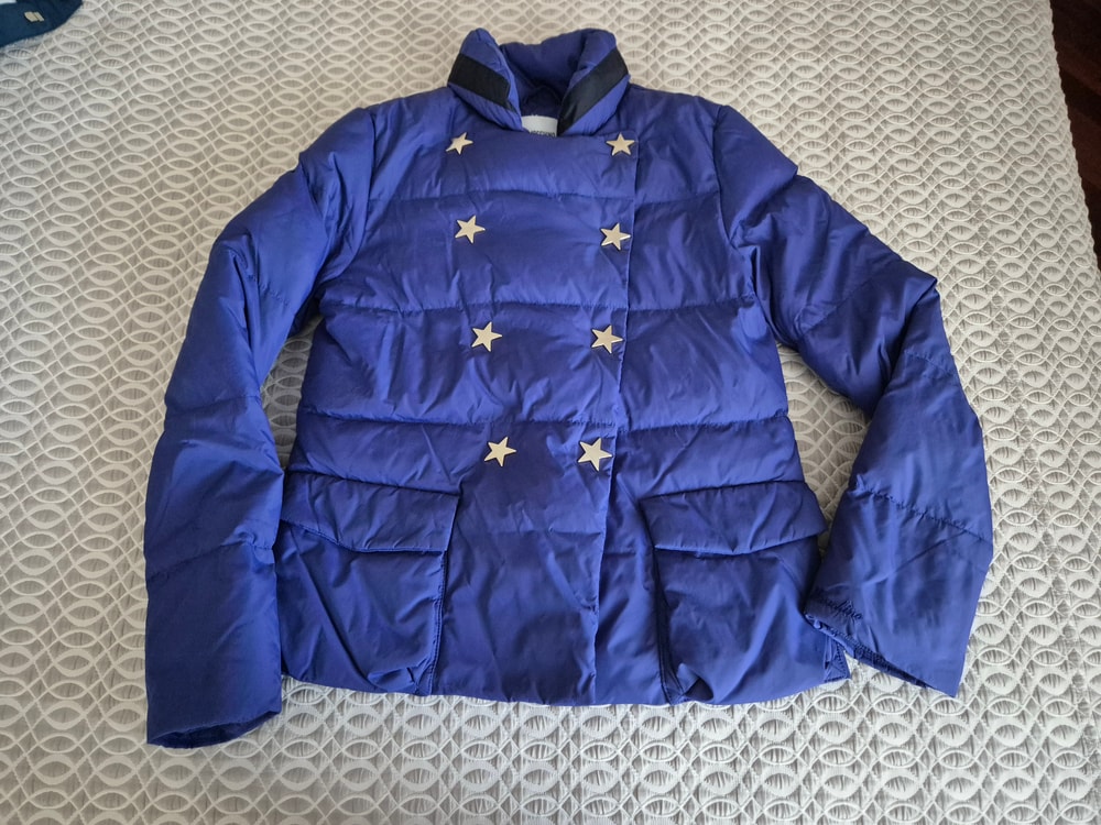 33. Самая любимая куртка. Очень стильная и красивая. Оригинал. Пух - на холодную осень/весну. Размер 146, но маломерит на 140 и даже еще чуть по раньше можно. Есть недочеты - у одной звездочки зацепка - фото, на одном локте типа затяжки не большой и второй локоть чуть потерт - фото. После последней химчистки еще чуть носили, но не грязная. еще можно носить пока, чистить сразу не нужно. Экв 4000 руб.