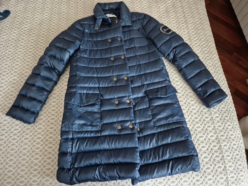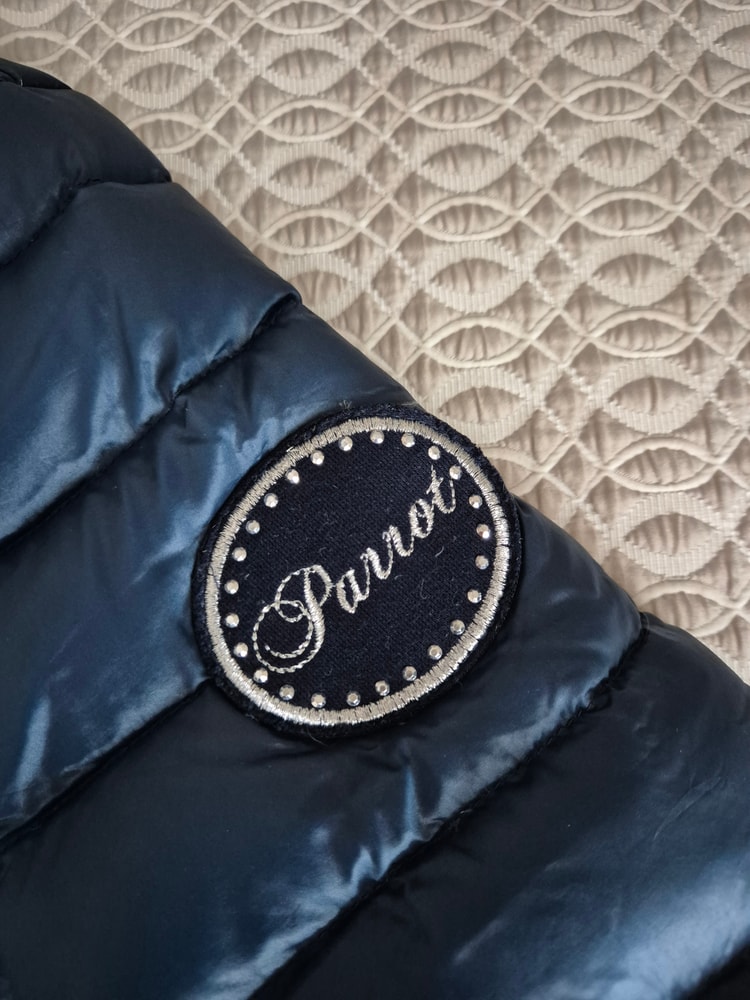 34. ТОнкая пуховка Parrot Италия оригинал. Размер вроде 146, но маломерит на 140 и по раньше чуть можно еще. После послежней химчистки не много носила дочь, но пока чистка не требуется - не грязная. Для школы отличный вариант. Экв 4000 руб.