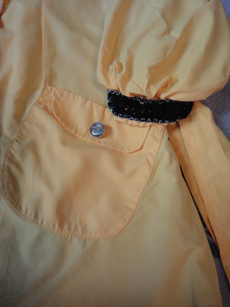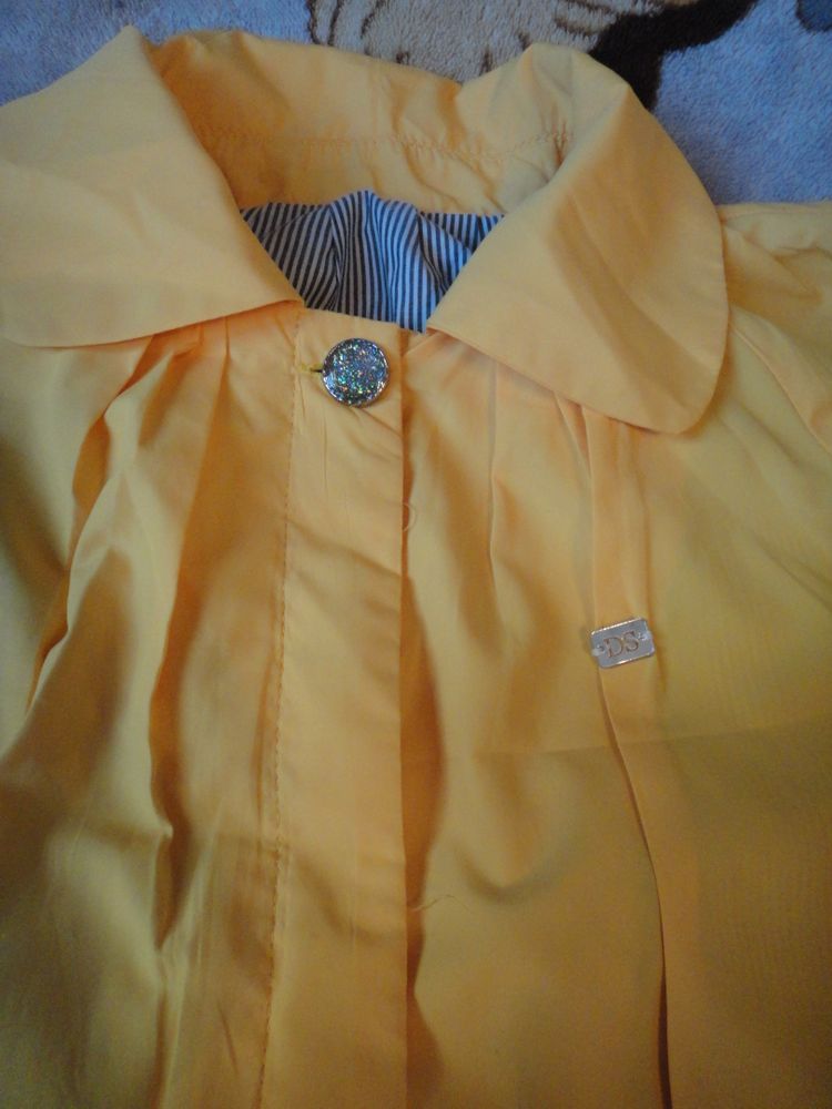 5.Жакет-ветровка De Salitto, р.140. Цвет - желтый. В комплекте - пояс и сумочка на молнии. Застегивается на пуговицы, 2 кармана, манжеты украшены черными пайетками. Длина - 60 см. Экв. 1700 руб.