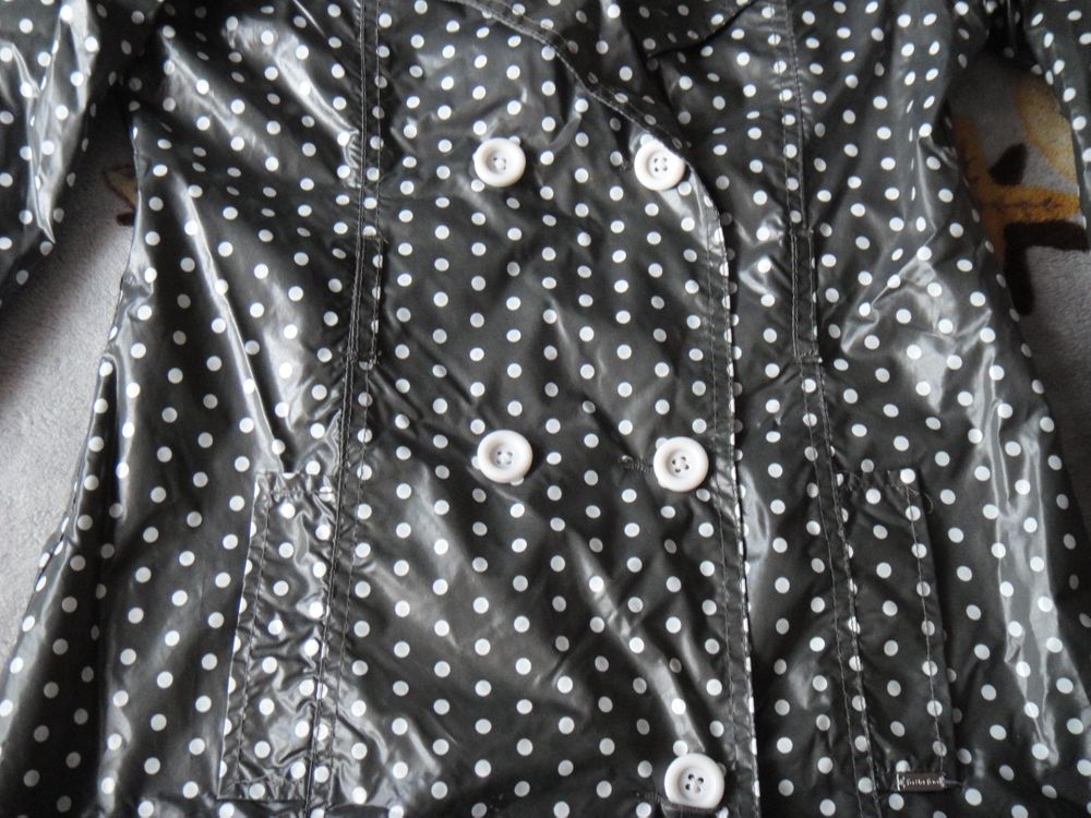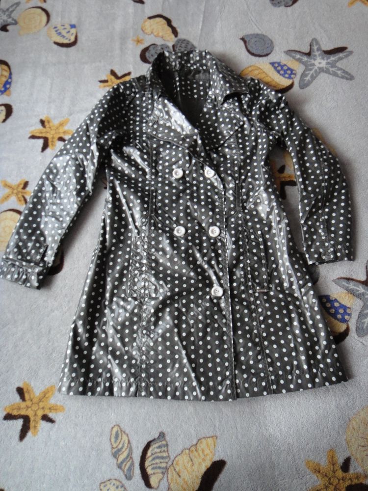 10. Плащ to be too коричневый в белый горох, р.36 (р.140-146). 100% нейлон, застегивается на пуговицы, 2 кармана. Длина по спинке - 74 см., рукав от плеча - 51,5 см., от подмышки - 38 см. Экв. 900 руб.
