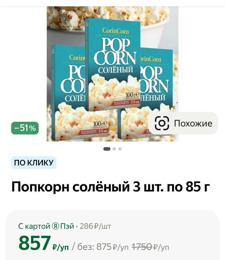 Попкорн 🍿 упаковка из 3 шт экв 850 руб