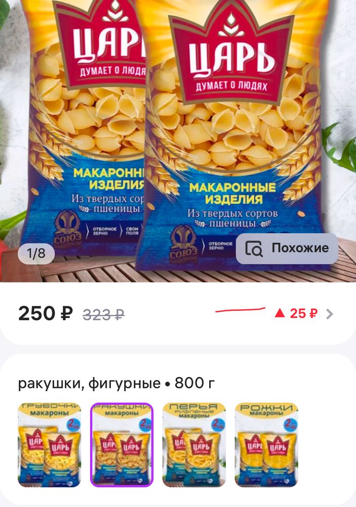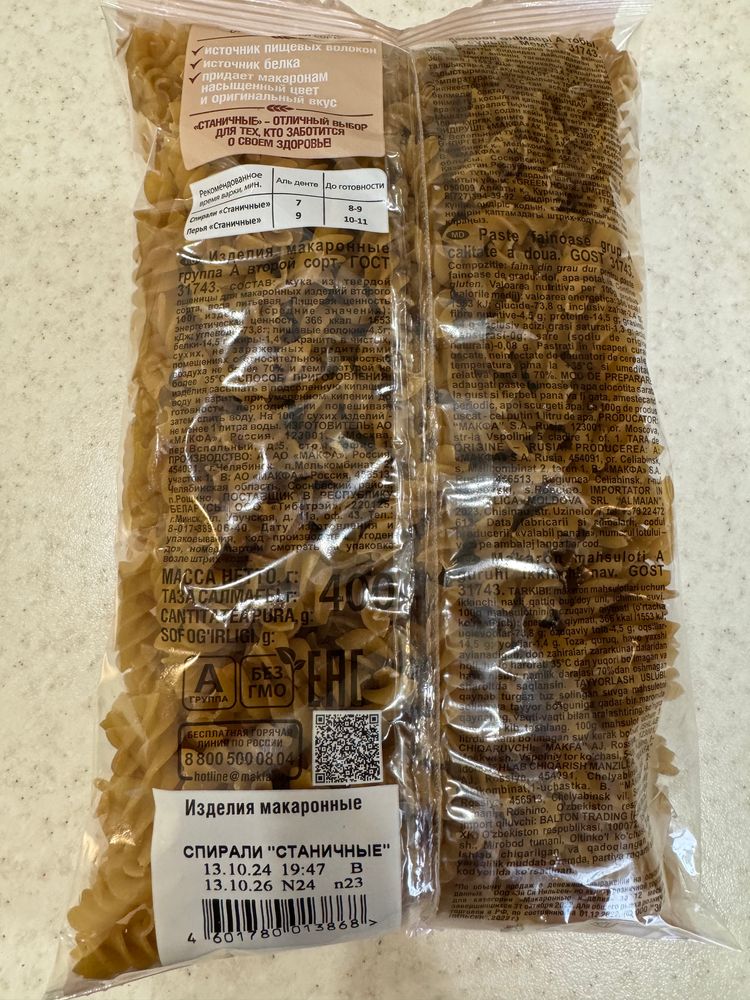 макароны спирали 2 шт экв 250 руб