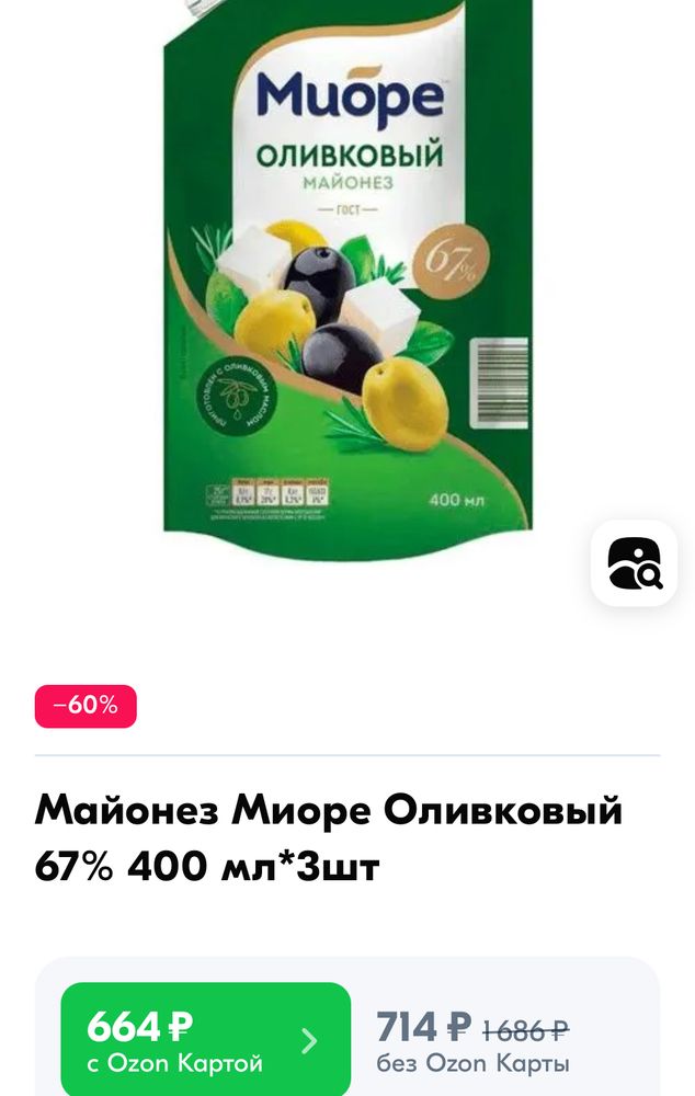 Майонез оливковый 1 шт экв 230 руб