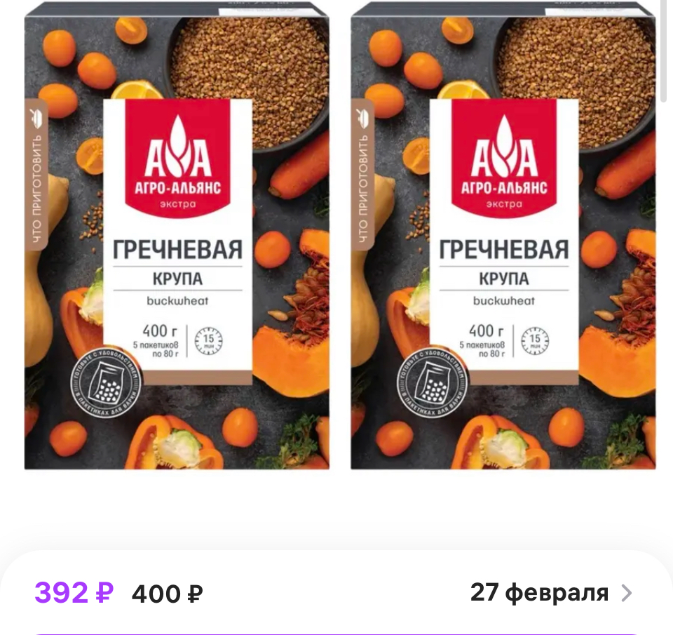 гречка 400 г экв 200 руб