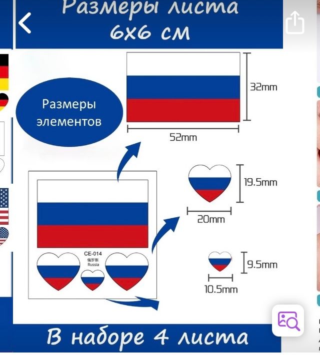 Временное тату «флаги стран мира» 11 шт. Экв. 100