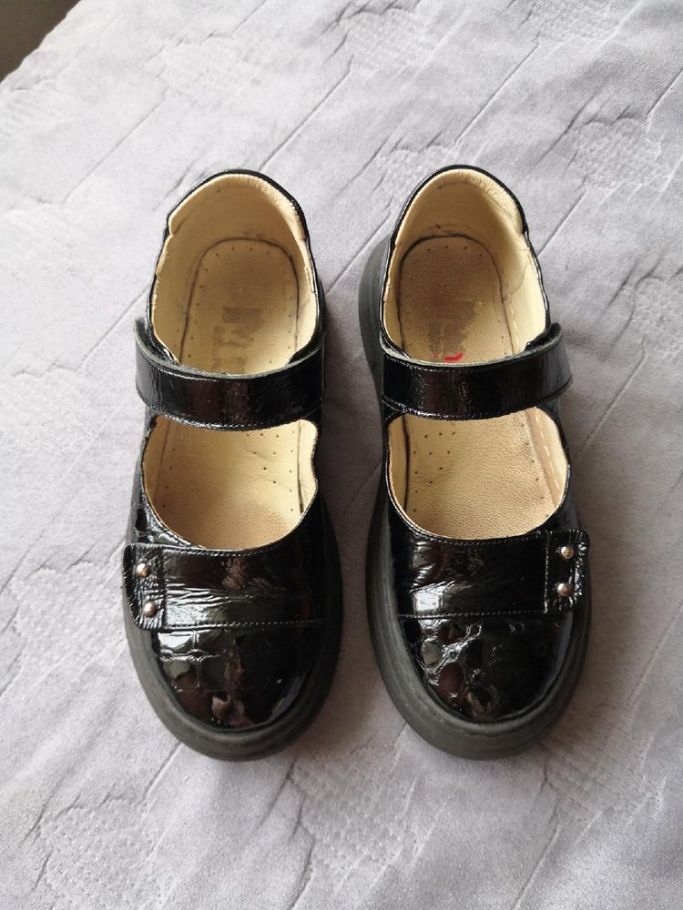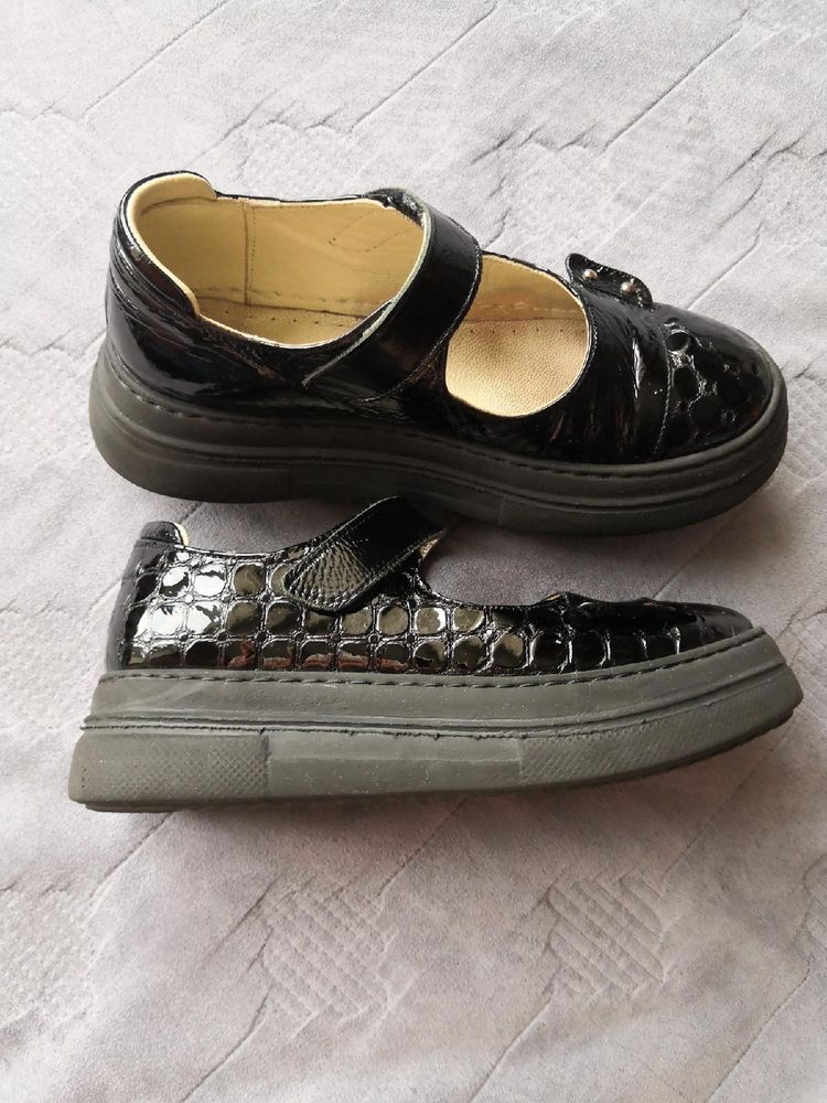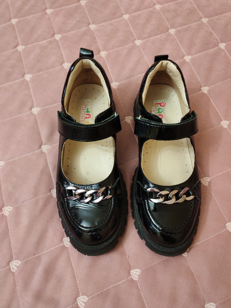 Школьные туфли для девочек от турецкой торговой марки Меdvејоnок Раndа! Эта модель обуви из натуральной черной лаковой кожи с удобной колодкой и стелькой с упругим супинатором, которая отлично массирует ножку и является хорошей профилактикой плоскостопия.