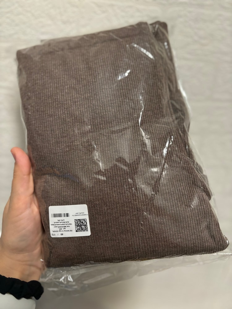 На 48-50, я ошиблась с размером , ткань в рубчик, светло-коричневый цвет модный