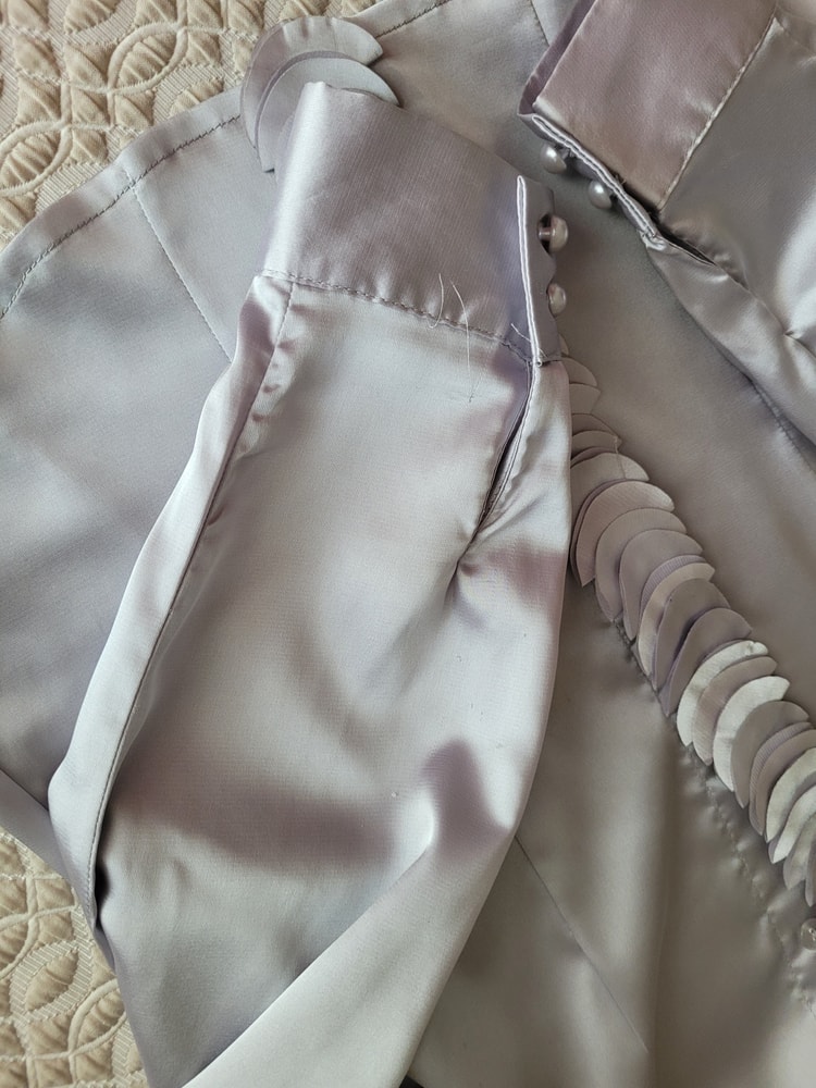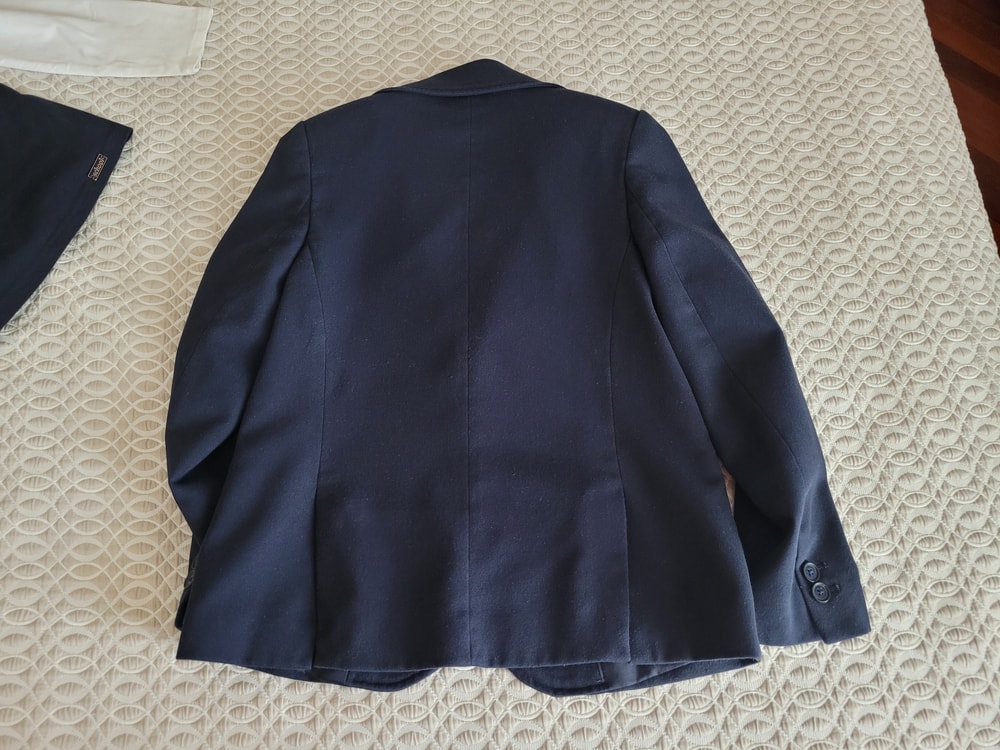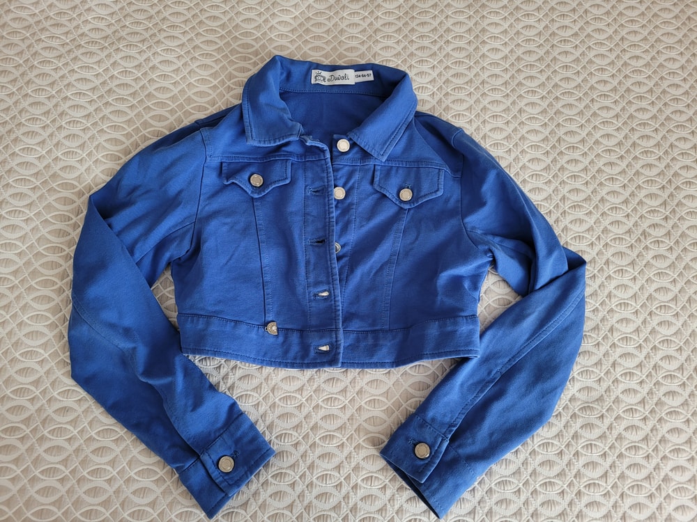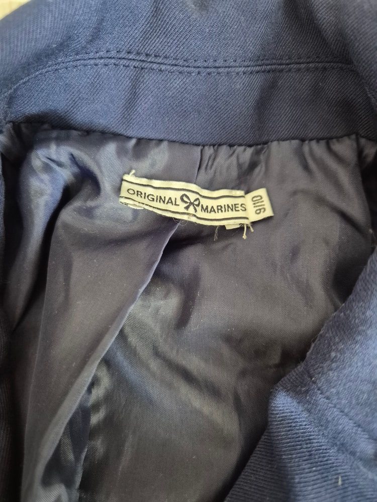 Жакет Размер 134, но лучше раньше носить. В 2-х местах чуть разошелся подклад по шву - зашила. В носке совсем не видно. 1200 руб.