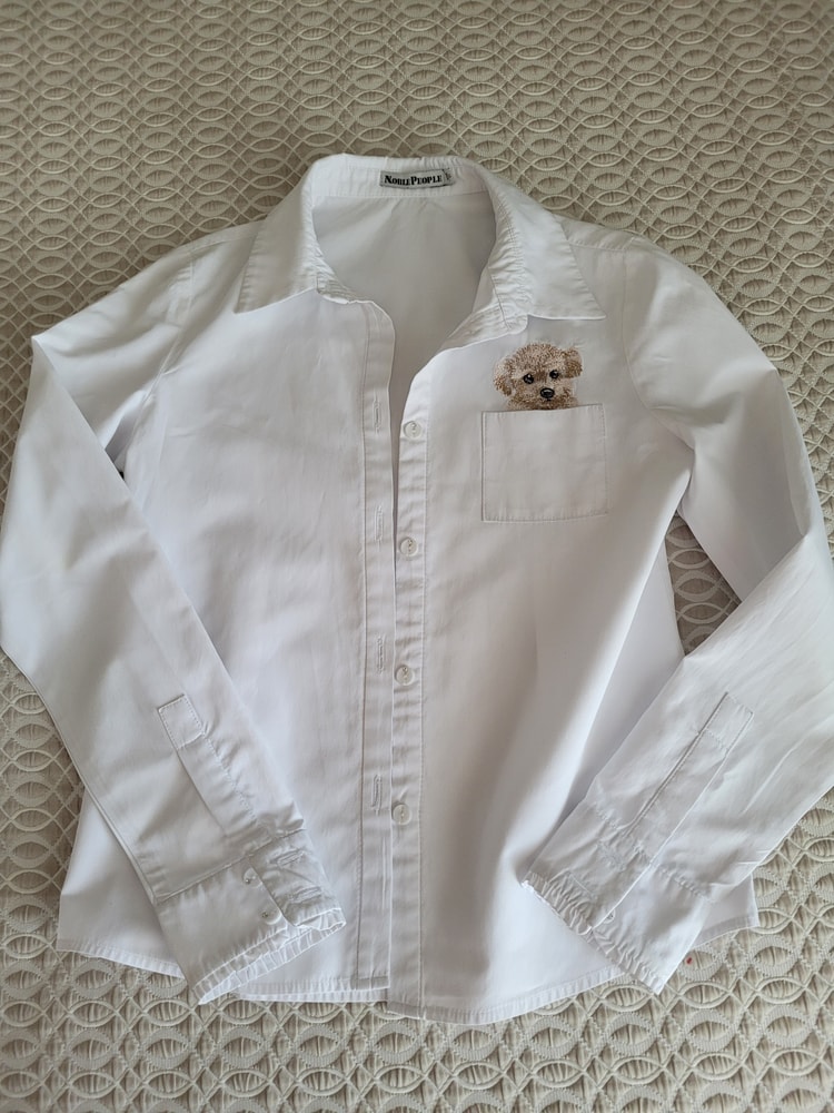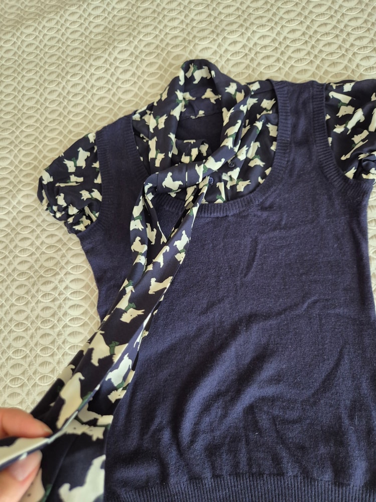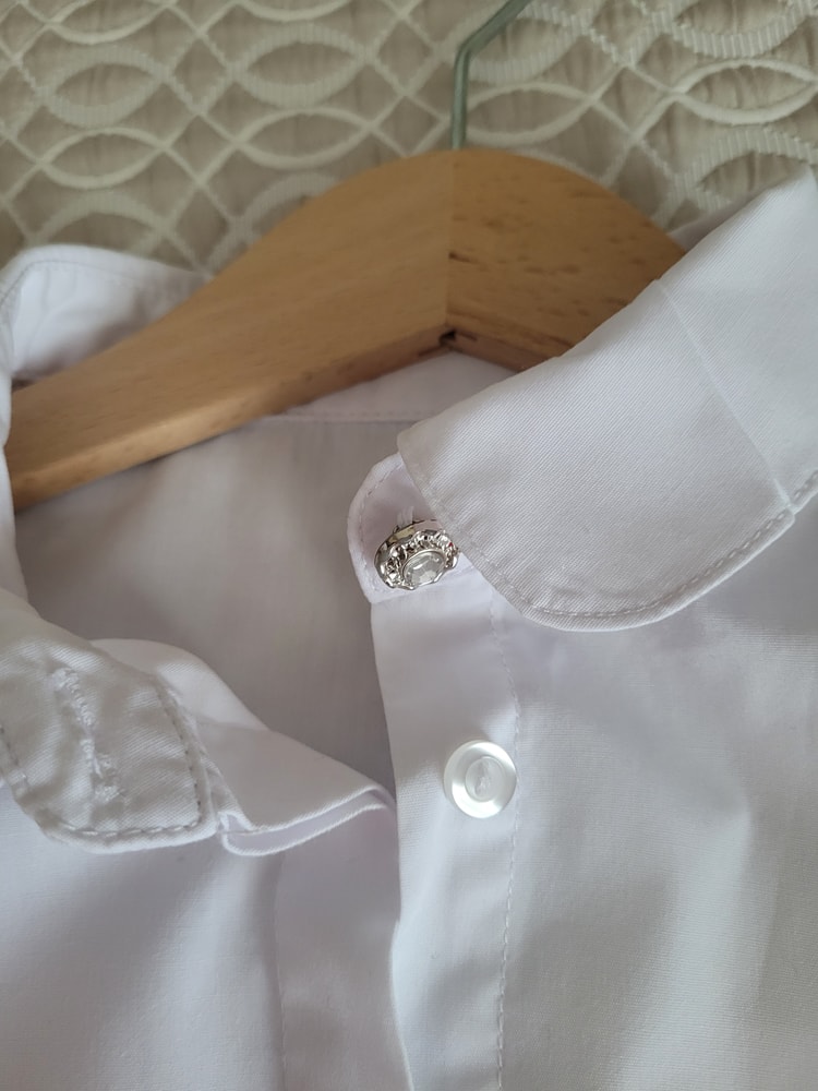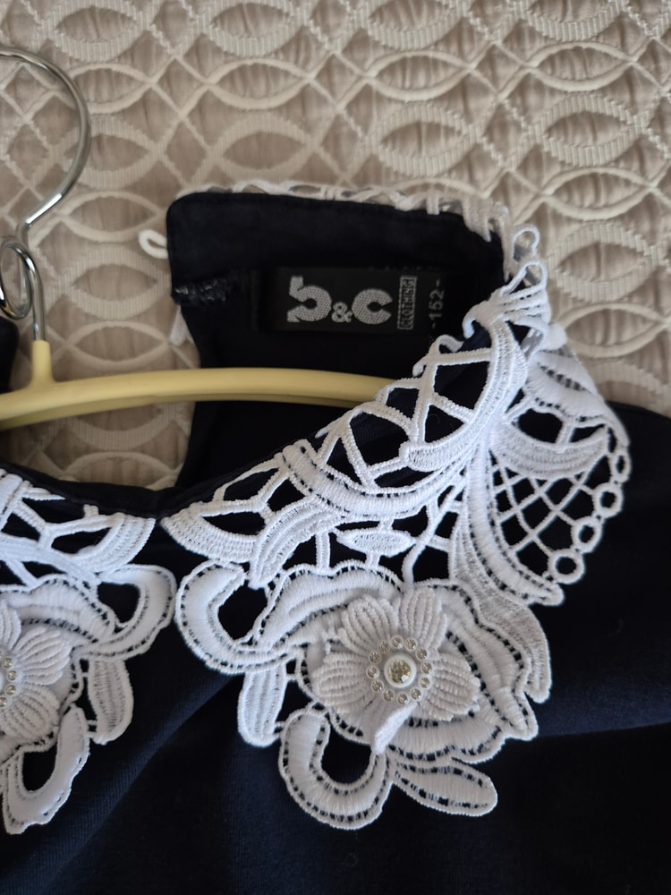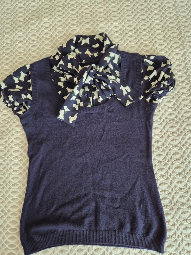 153. noble people с вышитой собачкой. Очень нарядная и красивая. Размер 146, но лучше на 140. В отличном состоянии. на манжетах, если очень придираться чуть серее ткань в уголочках, где с партой контакт. и на правом рукаве на локте очень бледное желтоватое пятнышко - можно увидеть если знать где оно или внимательно смотреть при ярком света. В носке вообще не видно, но стараюсь указывать любые, даже мелкие недочеты. 1500 руб.