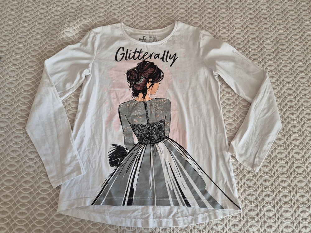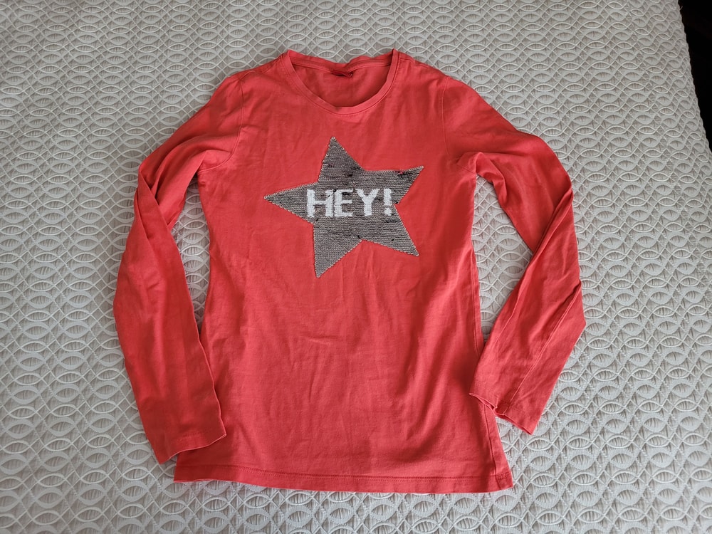 126. ФИрменный свитшот. Классно смотрится, дочка очень любила его. Размер 134, но лучше от 128 носить. Экв 900 руб.