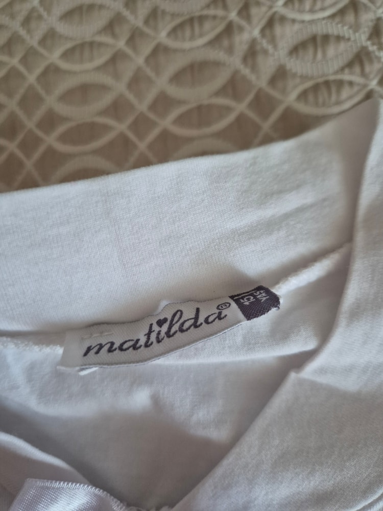 147. Белоснежный красивый лонг на 134 рост. На локте было серое пятнышко не явное. Попыталась выводить пятновыводителем. в итоге и его не вывела и чуть желтоватые разводы вокруг получились. :(( Особо в глаза не бросается. Фото не могу прикрепить, пришлю в личку. В остальном отличное состояние. Экв 600 руб.