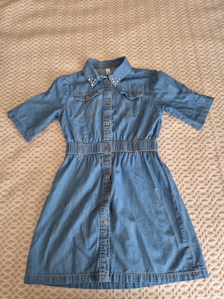 19. Сарафанчик джинсовый наверное переобменяю все таки. Размер 122, но есть система роста в лямках, от 116 уже можно и до 128. На худышку 118 см широковат на бедрах. Экв 1500 руб.