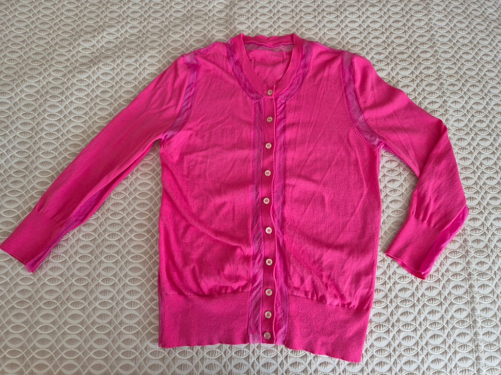 147. Нежнейшая кофточка Moschino. Очень красиво с платьем без рукавов в театр или на футболочку. Мягкая очень. 128 рост, на 134 то-же можно худенькой. Экв 1500 руб.