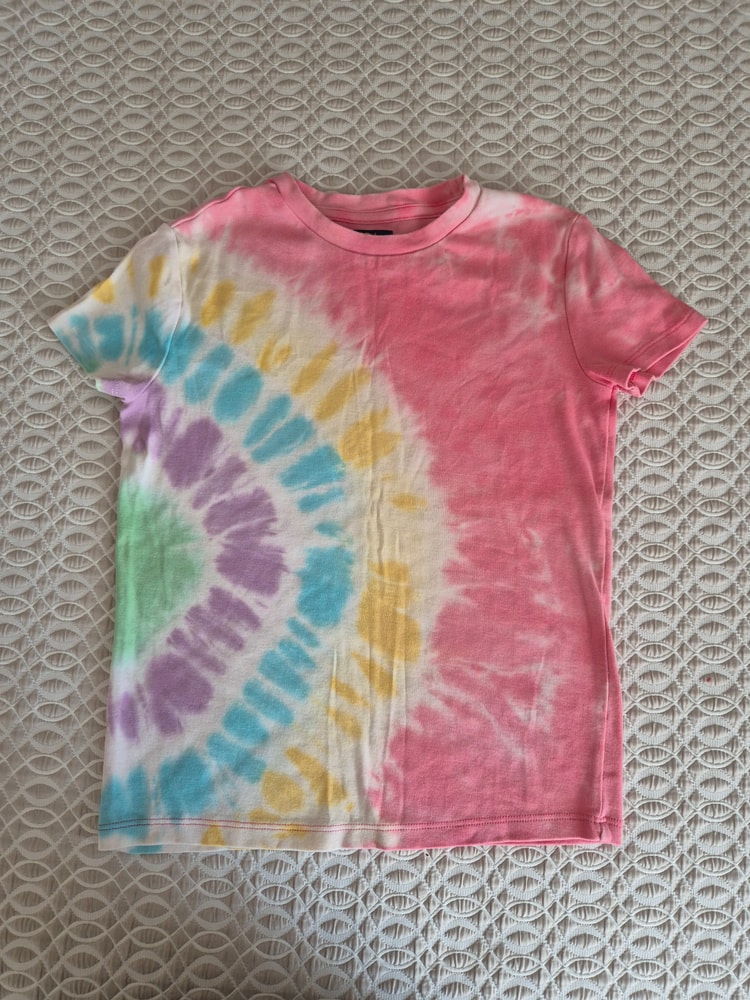 173. Футболка сильно маломерит. на 140 рост примерно. Ношена раза 3. Бледность цвета родная. Экв 700 руб.