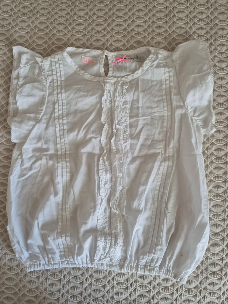 141. Блузка Pinetti размер 140, но с запасом. На 146 то-же можно наверное. Меняла здесь как новую витринный образец. Мы не носили. Пятнышек и т.п. нет, н она одном рукаве есть потертости - фото. Особо не видно. Все остальное в прекрасном состоянии. Экв 1500 вроде был.