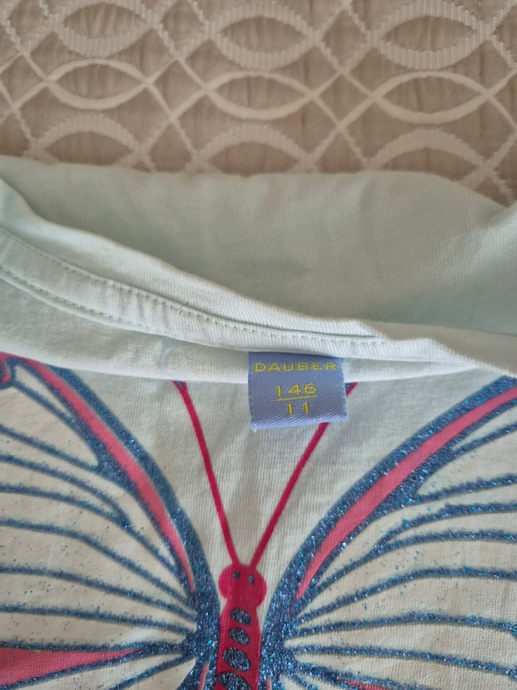 167. D&G оригинал. Меняла тут. Моя носила раза 2 наверное. Цвет не такой яркий. Тоненькая, на лето супер. Подойдет на 134, 140 и на 146 даже если худенькая. Рукав укорочен. Экв 3500 руб.