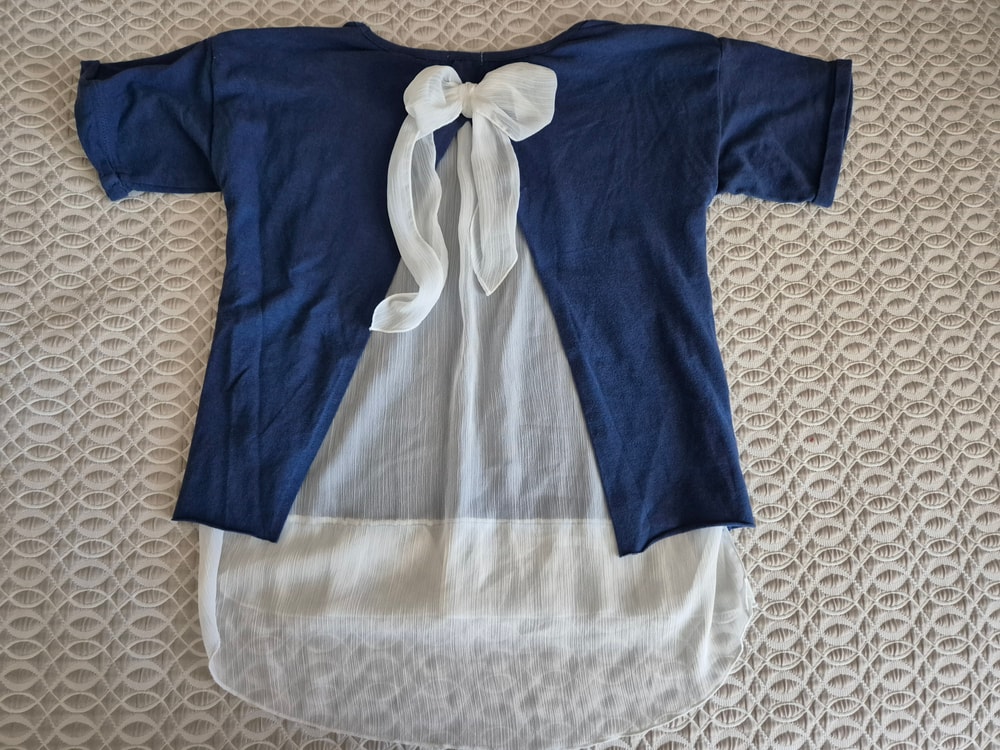 122. кофточка с ажурными рукавами, очень красивая. Дочка любила. Без недочетов. На 128 хорошо. 500 руб.