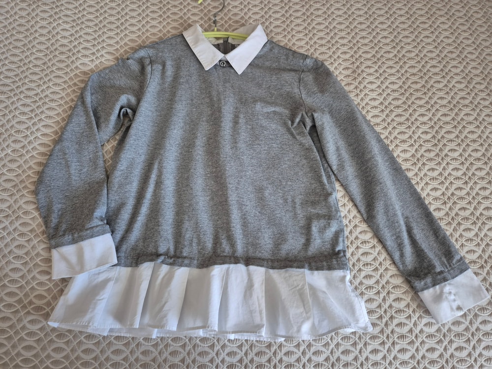 154. Блузка серая Born носили не много. Но есть чуть затяжки - пришлю фото. Размер 134, но лучше на 140. 700 руб.
