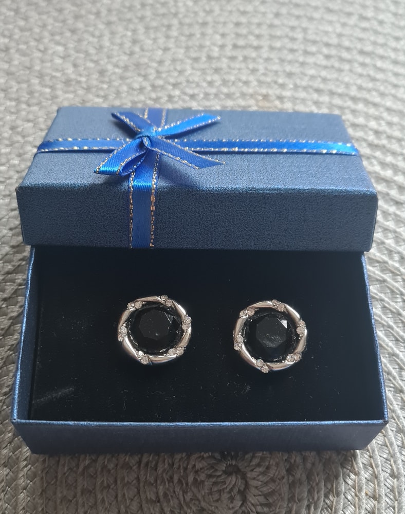 Запонки с фианитами, из набора, этикетки нет, но не носились, Нидерланды, подарочная коробка, 1500=